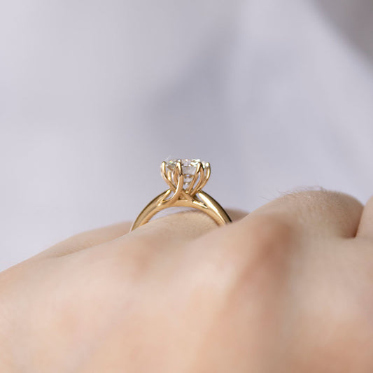 Un Diamante con una montura de uñas, un estilo atemporal. Sin importar el corte de la piedra, un diseño que conservará por siempre su atributo principal: Elegancia.